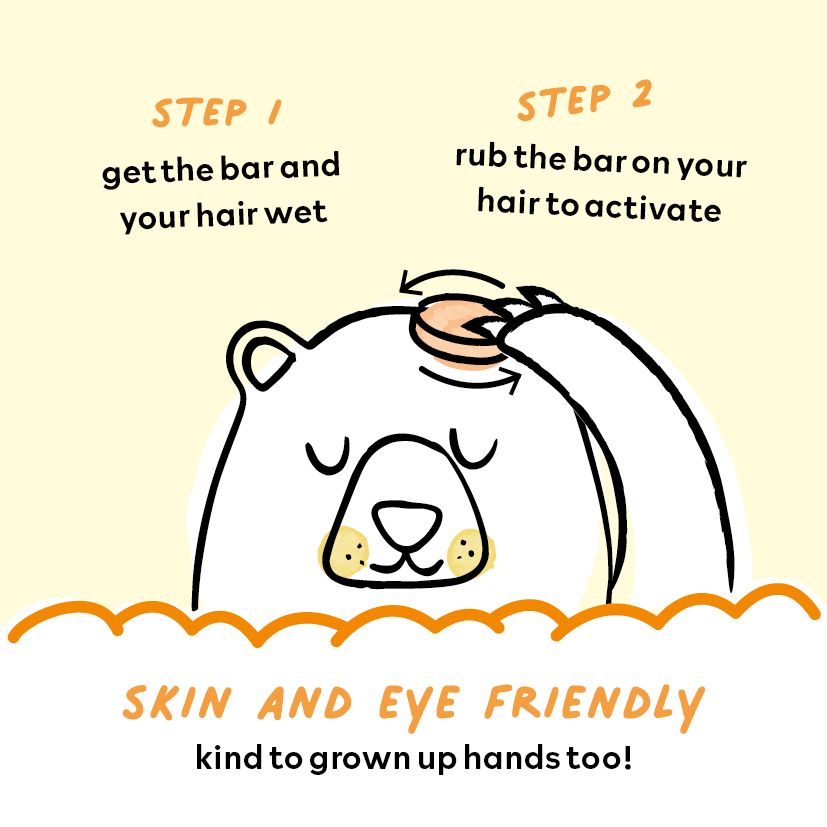 - Add a pop of colour to bathtime with our vibrant, zesty Orange Shampoo Bar specially designed for the littlest heads. Crafted using natural, kid-friendly ingredients this bar gently foams and cleanses without harsh chemicals or sulphates, providing a nourishing lather that leaves hair clean, smooth and sniffably fresh. - Infused with Argan Oil and Provitamin B5, our shampoo bars are nourishing and moisturising leaving hair soft, strong and tangle-free.